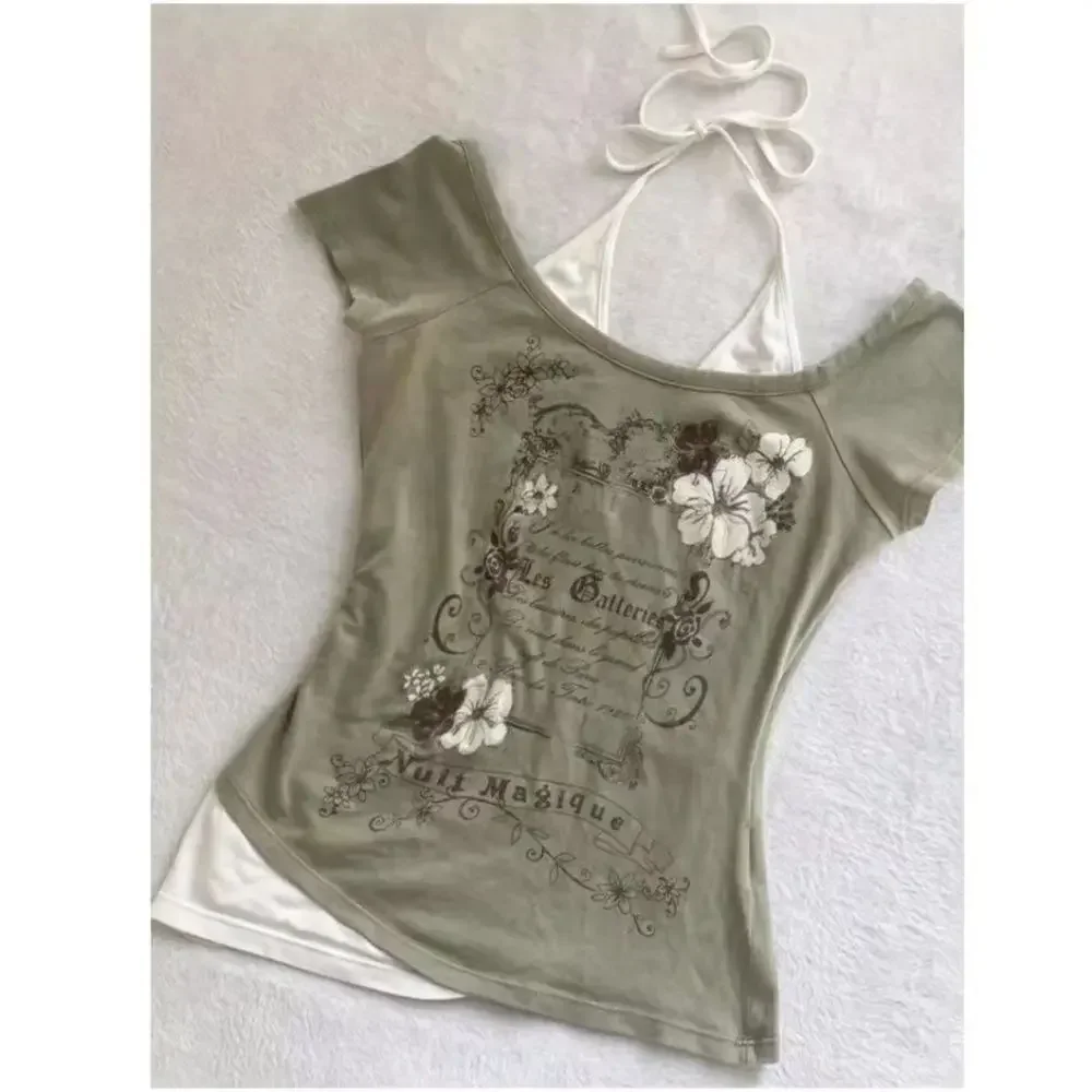 Edgy Y2K tee with O-neck design and letter graphics. Made from polyester with slight stretch for comfort. Regular fit in classic style. Perfect for all seasons, this Harajuku-inspired short sleeve top brings rebellious emo vibes to your wardrobe.