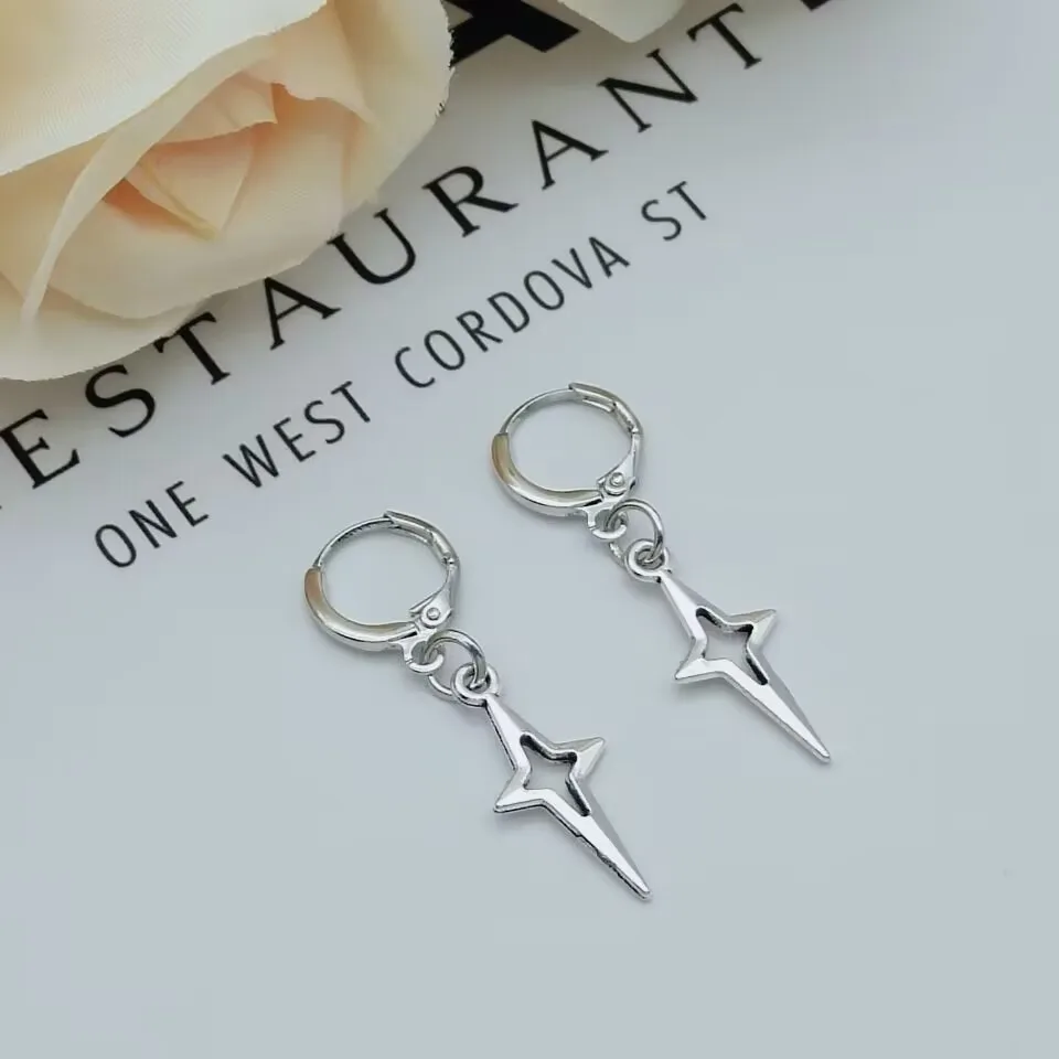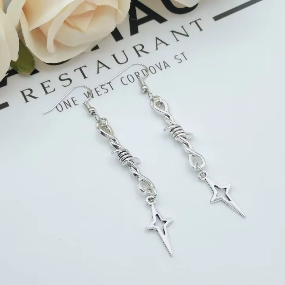 Edgy zinc alloy drop earrings featuring bold barbed wire geometric design. Perfect for making a rebellious statement with your Neo-Gothic style. High-quality fashion accessory for the fearless woman who dares to stand out.