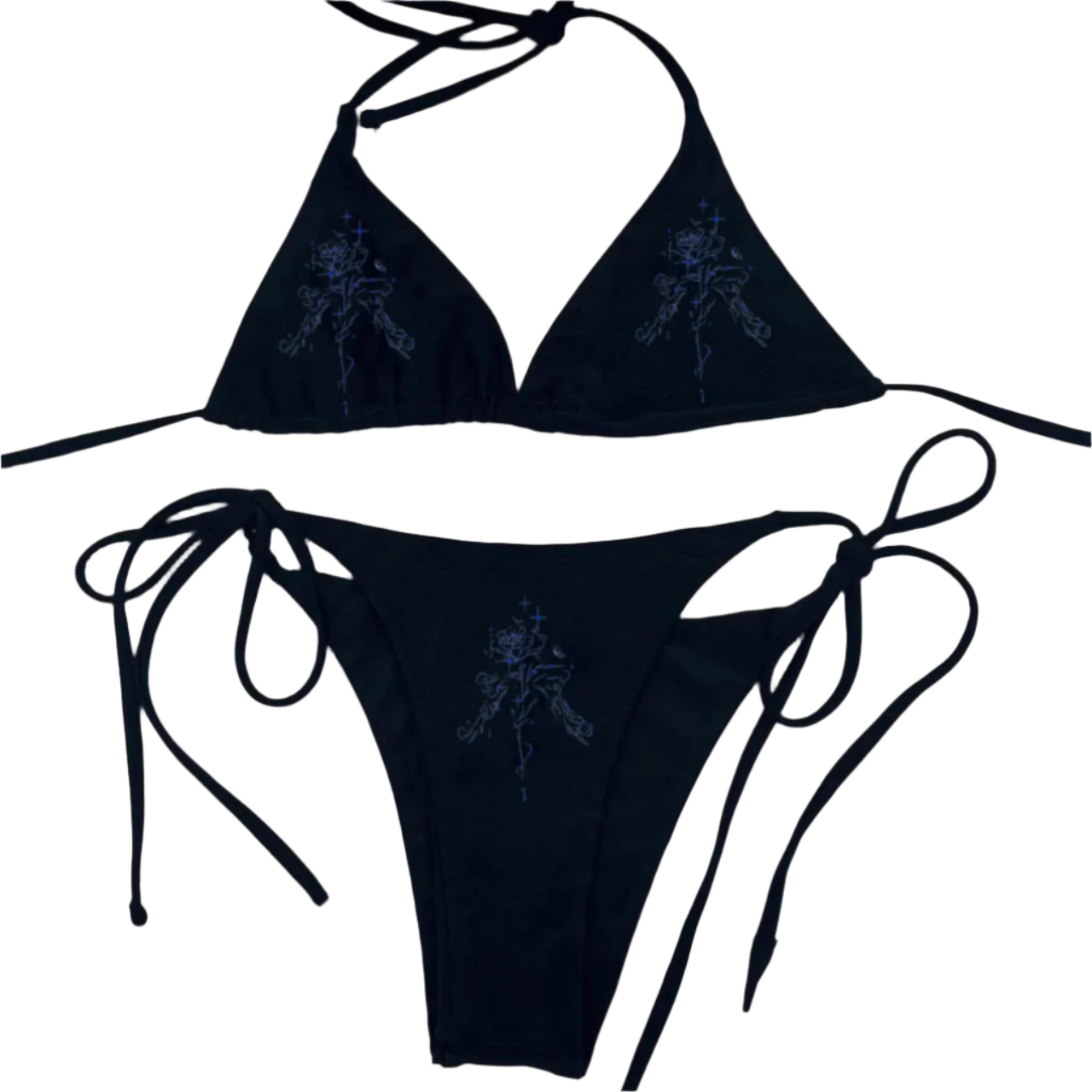 Elevate your swimwear game with the Cybersigilism Rose Bikini Set, a daring low-waist design crafted from smooth polyester for a sleek, geometric look. Its non-woven construction offers a lightweight feel without padding or underwire, ensuring comfort and freedom of movement. Designed to fit true to size, this bold bikini set is perfect for turning heads at parties or poolside events. Make a fearless statement with this edgy, modern piece that blends style and confidence effortlessly.