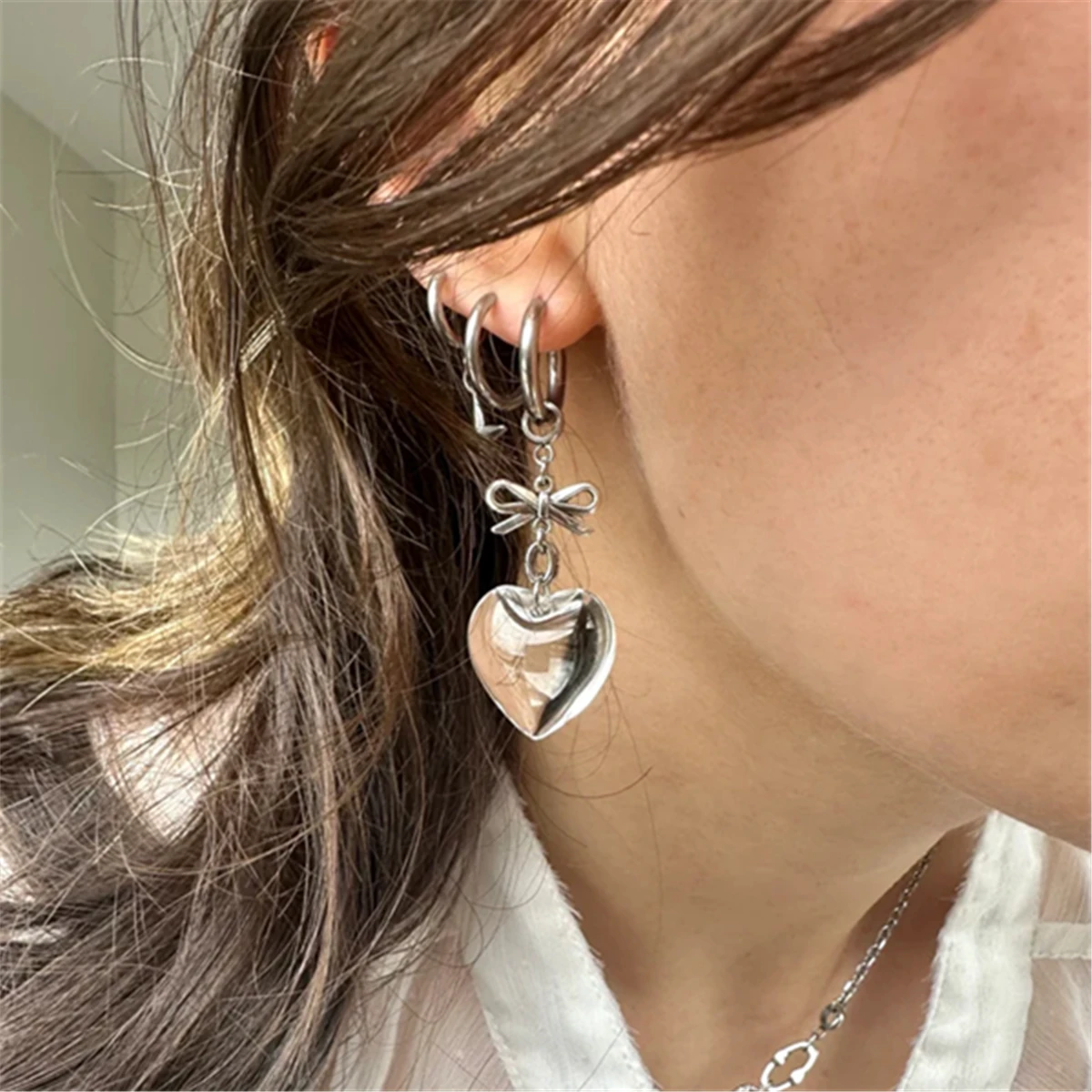 Edgy heart earrings with asymmetrical design. Lightweight stainless steel and zinc alloy construction. 5.5cm drop length adds bold flair to any outfit. Romantic yet rebellious statement piece that demands attention.