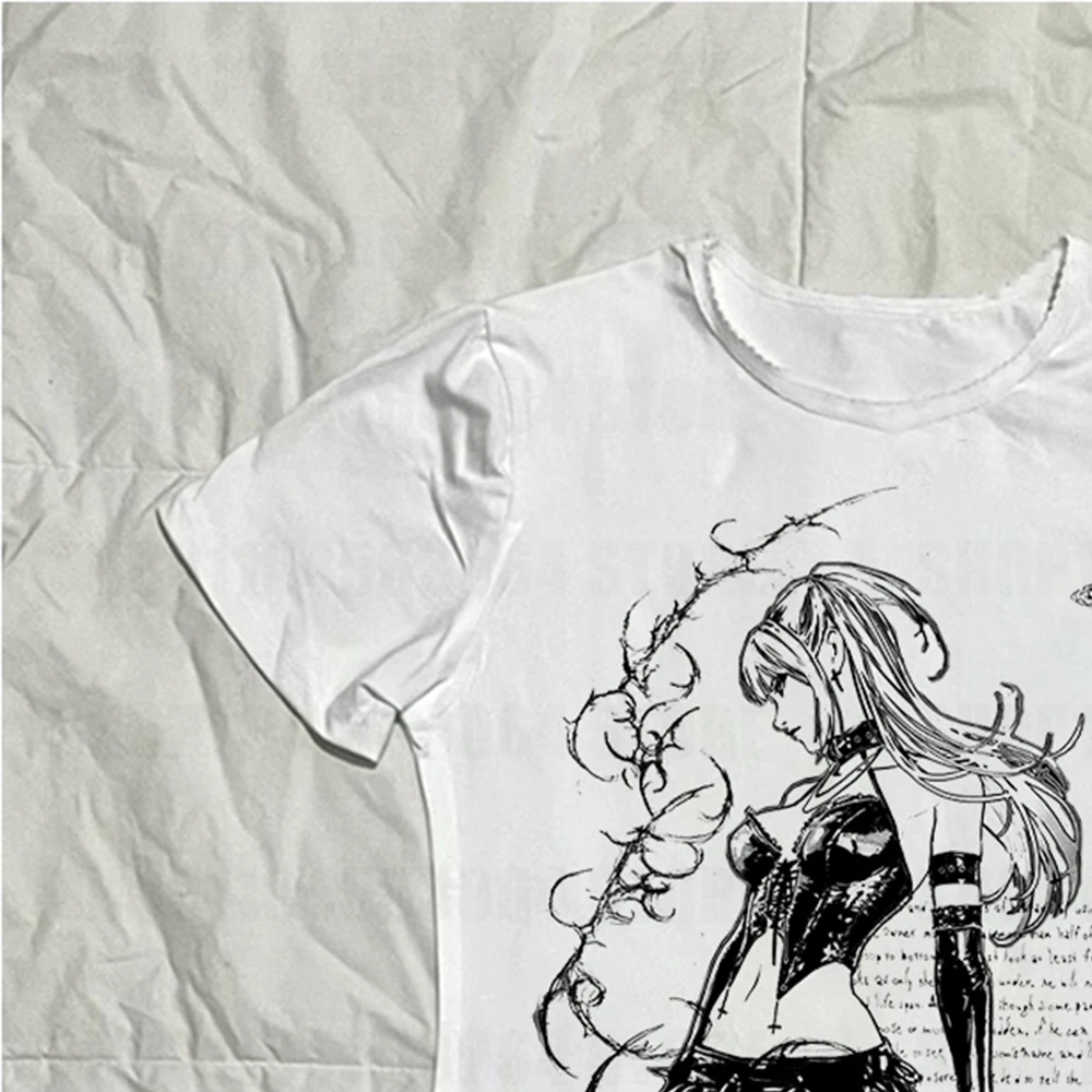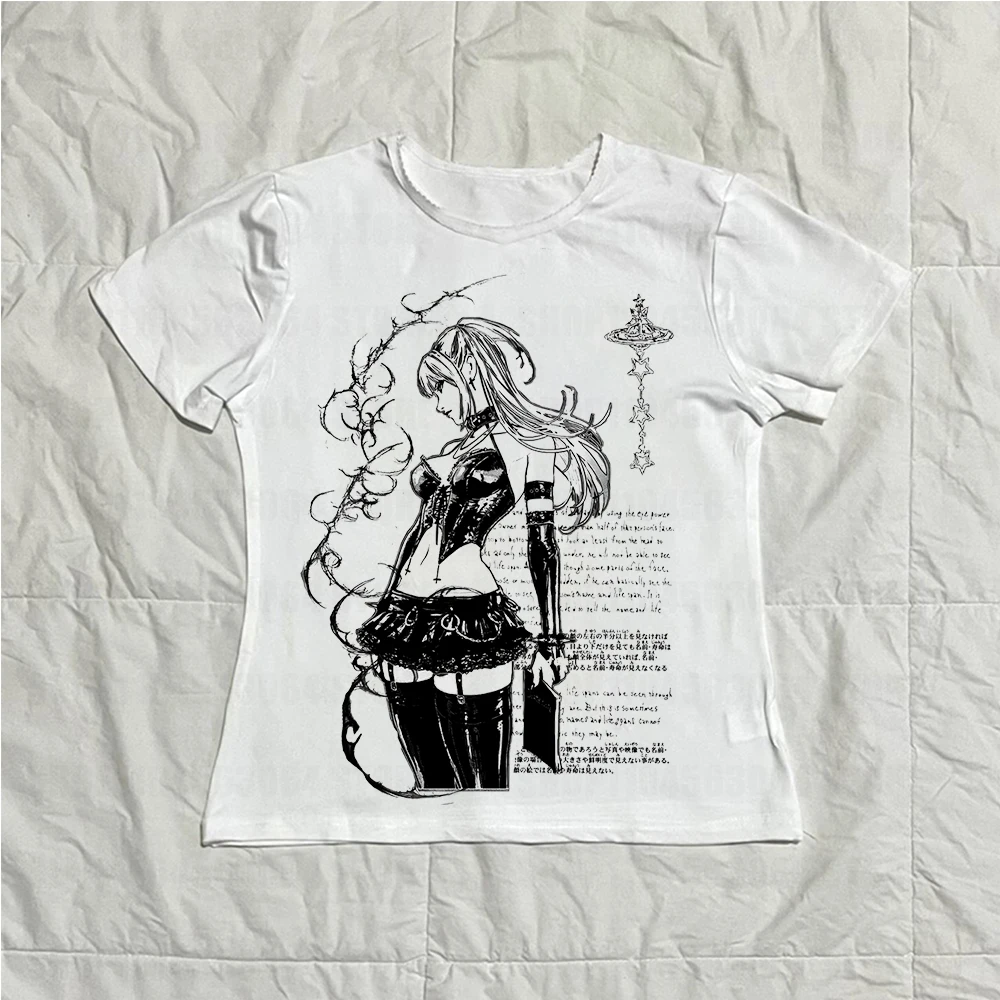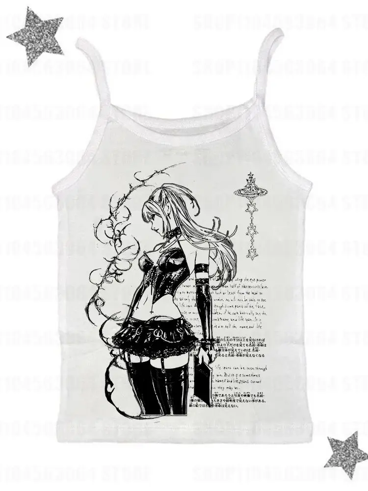 Defy convention in our Misa White Tee – a provocative gothic cami crafted from slightly stretchy polyester blend. Featuring edgy cartoon appliques and a daringly short cut (4-16 inches), this women's top screams rebellion. Chemical-free and TAT-woven, it's your weapon of choice for Summer 2025. Not for the faint-hearted.