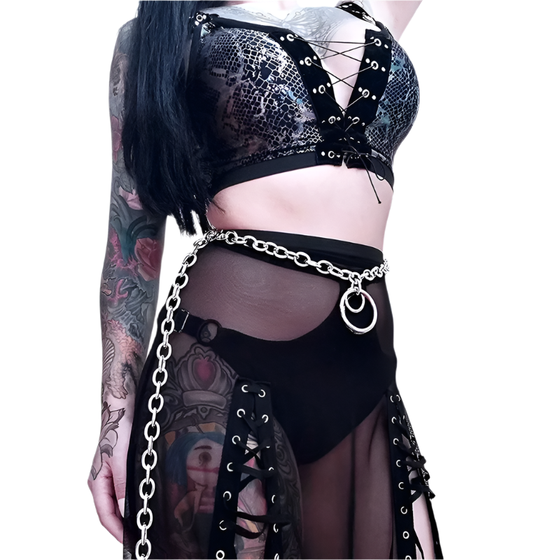Embellished with dazzling sequins, this ankle-grazing mesh maxi skirt features bold slits for a provocative edge. The slightly stretchy A-line silhouette hugs your natural waistline with regular fit. Crafted from polyester mesh in solid colors, this punk-inspired piece defies seasons—wear it whenever you dare to stand out.