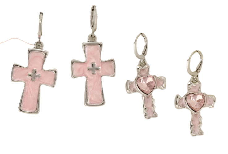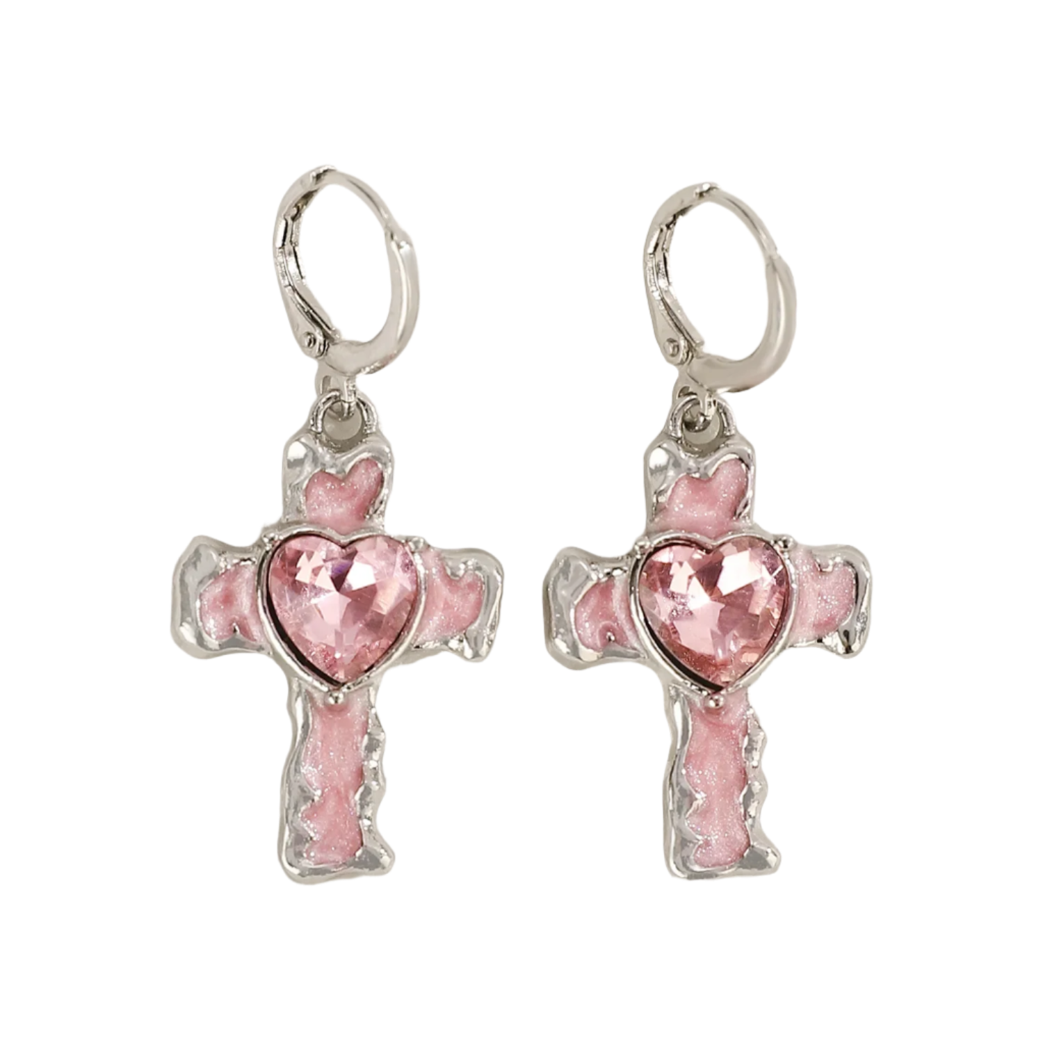 Totally rad scene drop earrings featuring the cutest heart, star, and strawberry pendants! These zinc alloy metal accessories are, like, the ultimate fashion statement for your Y2K aesthetic. Made in mainland China with trendy cross patterns, these gothic-inspired earrings are perfect for raves, EMO scenes, or just adding that extra edge to your everyday look. Designed for women who aren't afraid to stand out!