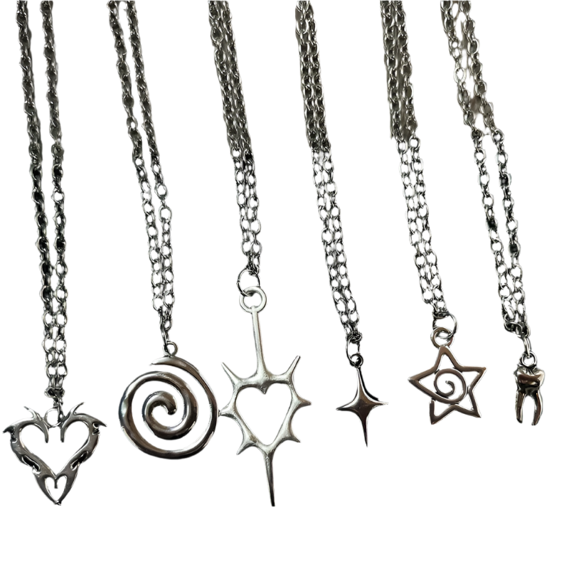 Edgy Y2K fire heart teeth pendant necklace crafted from titanium metal. This vintage-inspired statement piece brings punk grunge vibes to any party outfit. Unisex design perfect for those who dare to stand out.