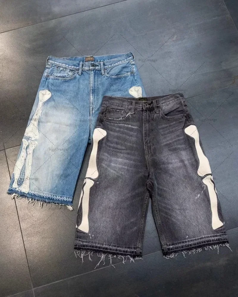 Featuring a zipper fly and crafted from soft cotton, these playful gothic-style denim shorts offer a light wash and a loose, comfortable fit. With a midweight fabric and a fun skeleton print, they’re perfect for summer casual wear with a cool, retro street vibe.