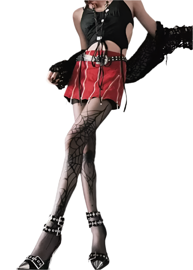 Edgy vintage inspired fishnet tights with spider web pattern. Perfect for gothic, emo, or punk aesthetics. Made with stretchy spandex for comfort. These dark, sexy pantyhose add attitude to any alternative look. Available in standard thickness.